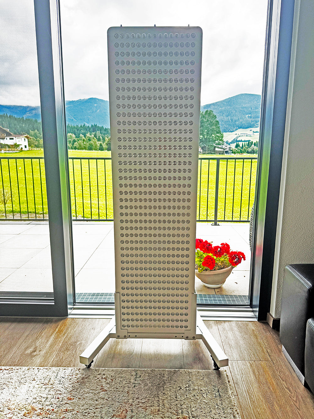 The Dermfix® RLF3000 red light therapy panel takes professional red light and near-infrared therapy to a new level – ideal for ambitious private users and smaller practices. With a height of 150 cm and a width of 40 cm, it offers a generous area for complete full-body red light therapy treatment.